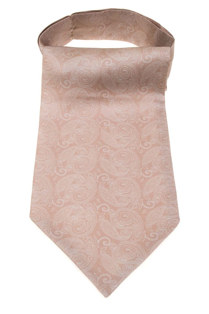 Acest ascot bej deschis cu model paisley emană finețe și rafinament. Nuanța pudrată este completată de un ornament subtil care se evidențiază delicat în lumină.