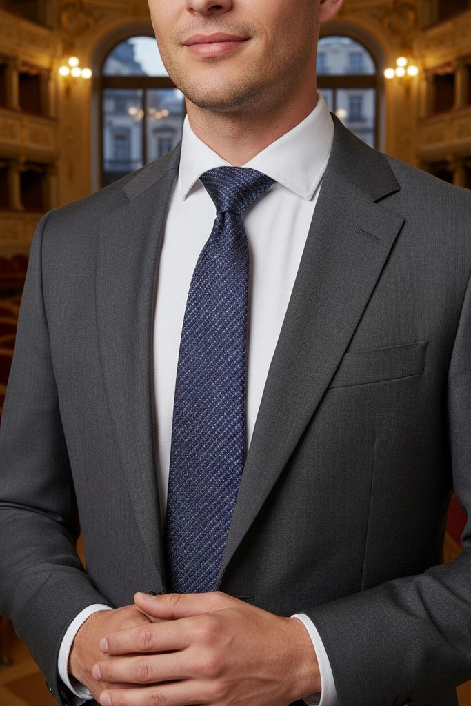 O cravată albastru închis cu model albastru și roz este o decorațiune elegantă pentru o cămașă bărbătească. Este perfectă pentru întâlniri de afaceri și teatru. Răsfață-te și încearcă această cravată interesantă.