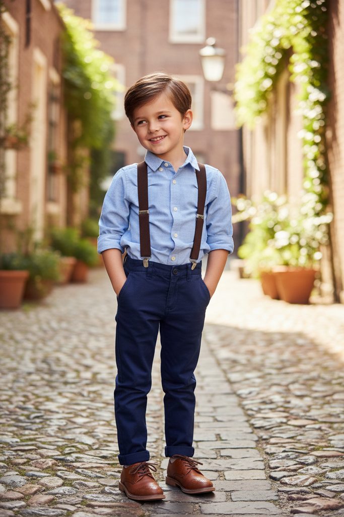 Aceste bretele pentru copii sunt concepute pentru micuții noștri bărbați. Brerete maro pentru băiat cu un centru din piele au curele elastice cu cleme metalice la capete, astfel încât să poată fi atașate cu ușurință de pantaloni.