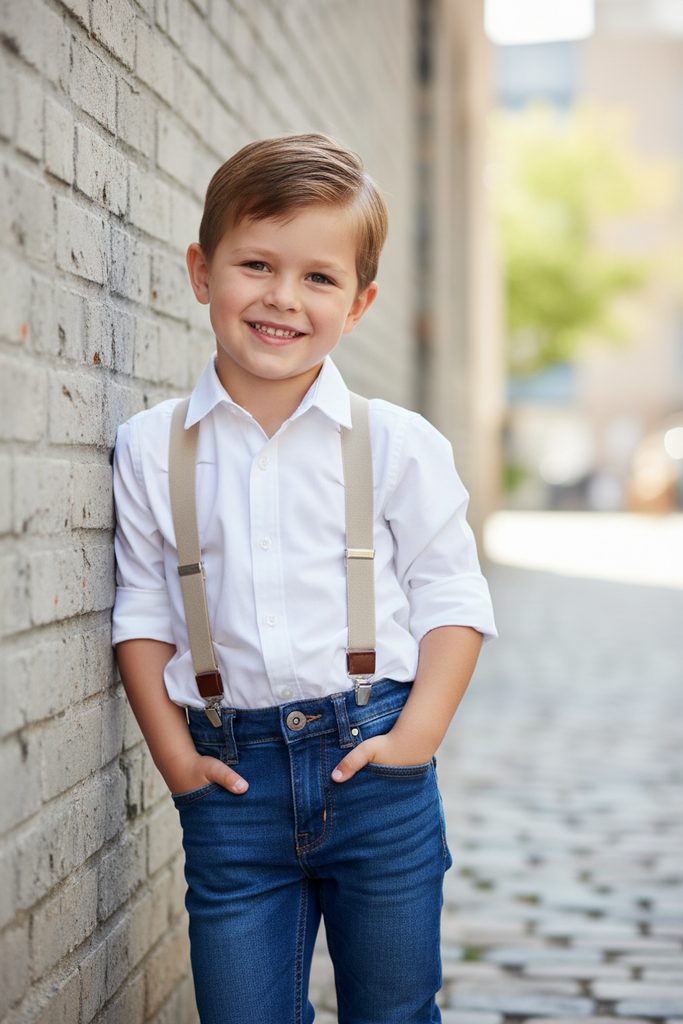 Aceste bretele pentru copii sunt concepute pentru micuții noștri bărbați. Bretere pentru băieți în formă de Y cu centru din piele au curele elastice cu cleme metalice la capete, astfel încât să poată fi atașate cu ușurință de pantaloni.