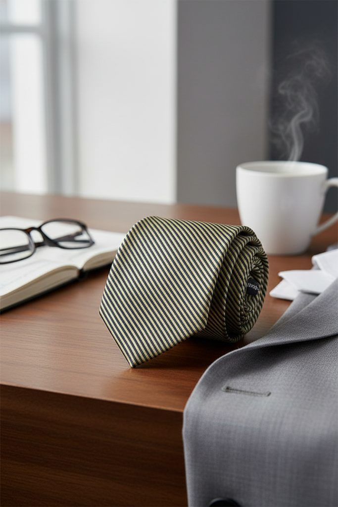 Avantajul acestei cravate din poliester Avantgard, latime 7 cm este durabilitatea ridicată. Fibrele de poliester sunt foarte durabile și, prin urmare, Cravată cu dungi gri-gălbui excelează în îngrijirea ușoară. Poliesterul are, în general, o umectabilitate scăzută, ceea ce înseamnă că se usucă rapid dacă se udă. În comparație cu cravatele din mătase, cravatele din poliester au o strălucire mai mică.