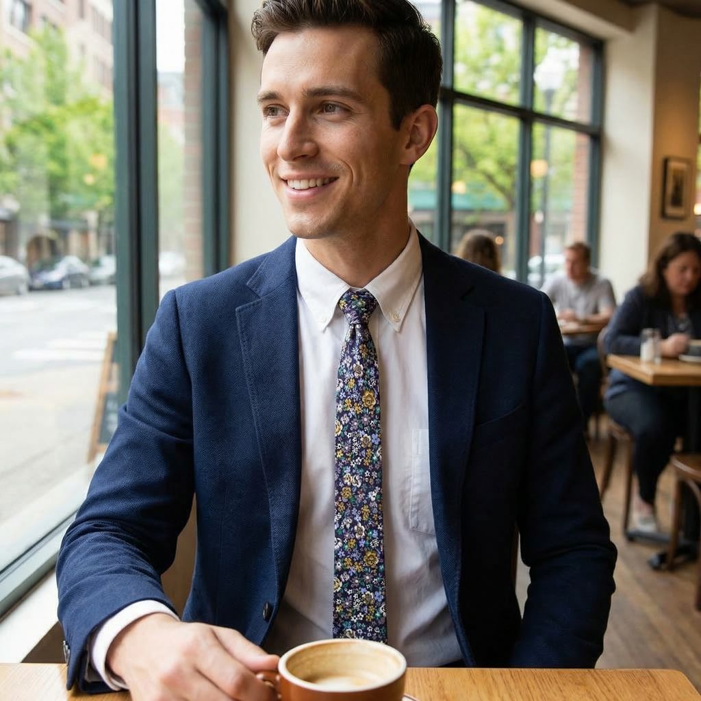 Este alegerea potrivită când vrei să păstrezi un look îngrijit, dar să ieși puțin din zona clasică. Croiala îngustă menține stilul modern, iar modelul floral aduce un accent plăcut.