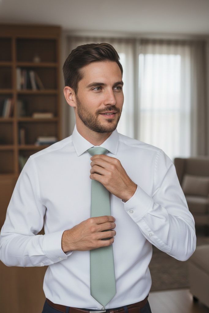 Această cravată verde eucalipt cu o structură fină a suprafeței este concepută pentru bărbații cu stil. Cravata este confecționată din poliester și are o lățime de 7 cm.
