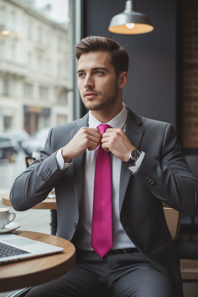 Avantajul acestei cravate din poliester Avantgard, latime 7 cm este durabilitatea ridicată. Fibrele de poliester sunt foarte durabile și, prin urmare, Cravata barbati fucsia excelează în îngrijirea ușoară. Poliesterul are, în general, o umectabilitate scăzută, ceea ce înseamnă că se usucă rapid dacă se udă. În comparație cu cravatele din mătase, cravatele din poliester au o strălucire mai mică.