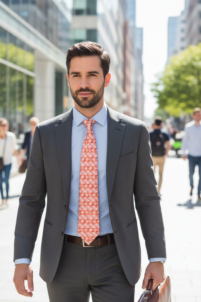 Avantajul acestei cravate din poliester Avantgard, latime 8 cm este durabilitatea ridicată. Fibrele de poliester sunt foarte durabile și, prin urmare, Cravata barbati portocaliu forme geometrice excelează în îngrijirea ușoară. Poliesterul are, în general, o umectabilitate scăzută, ceea ce înseamnă că se usucă rapid dacă se udă. În comparație cu cravatele din mătase, cravatele din poliester au o strălucire mai mică.