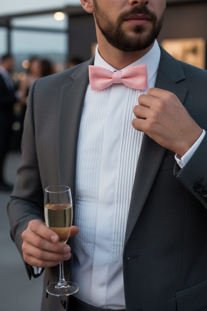 Papion clasic culoare somon marimea 10 cm se potrivește perfect cu orice frac sau cămașă smoking. Pe spatele papionului este atașat un cârlig cu ochi, datorită căruia lungimea poate fi ajustată cu ușurință în funcție de circumferința gâtului.