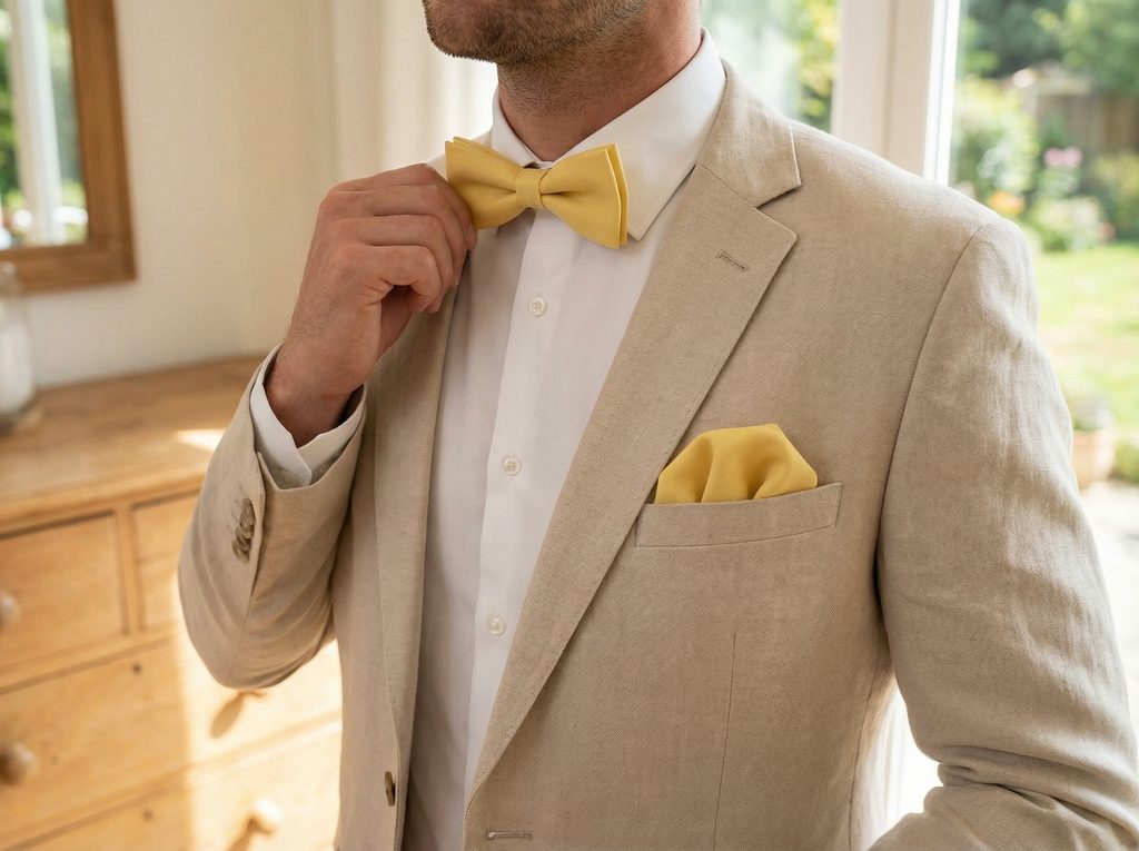 Arată foarte bine alături de o cămașă bleu deschis, unde galbenul iese în evidență fără să fie prea puternic. În combinație cu un sacou gri sau bej obțineți un echilibru plăcut și ușor de purtat. Pentru un plus de personalitate, alegeți o cămașă cu model discret, care adaugă detaliu fără a încărca vizual ținuta.